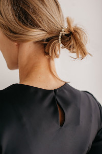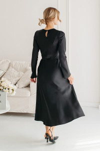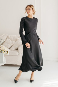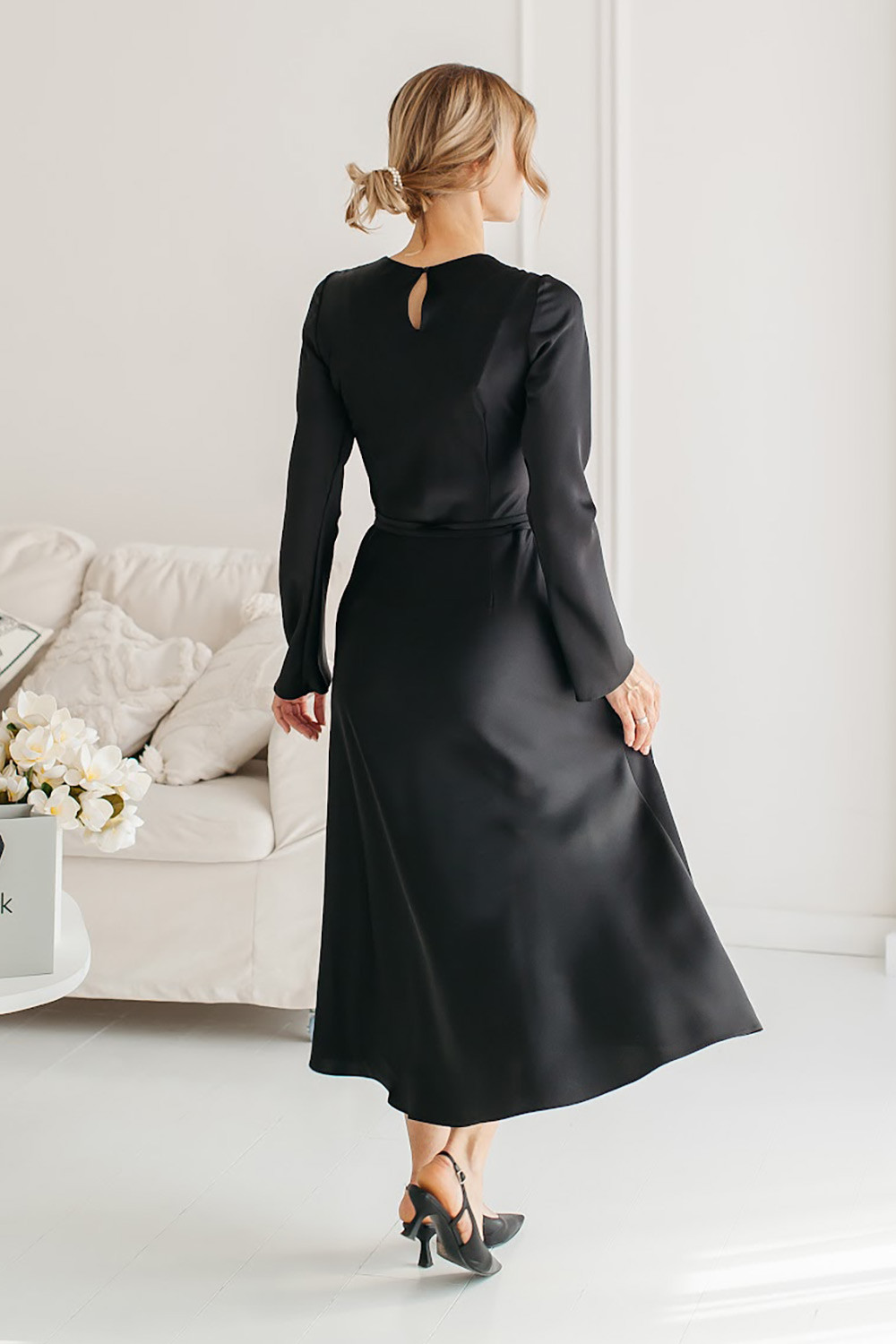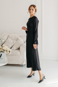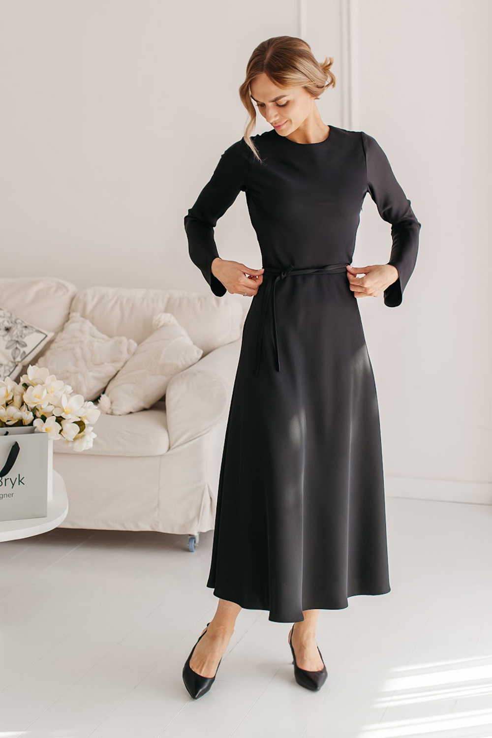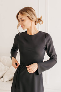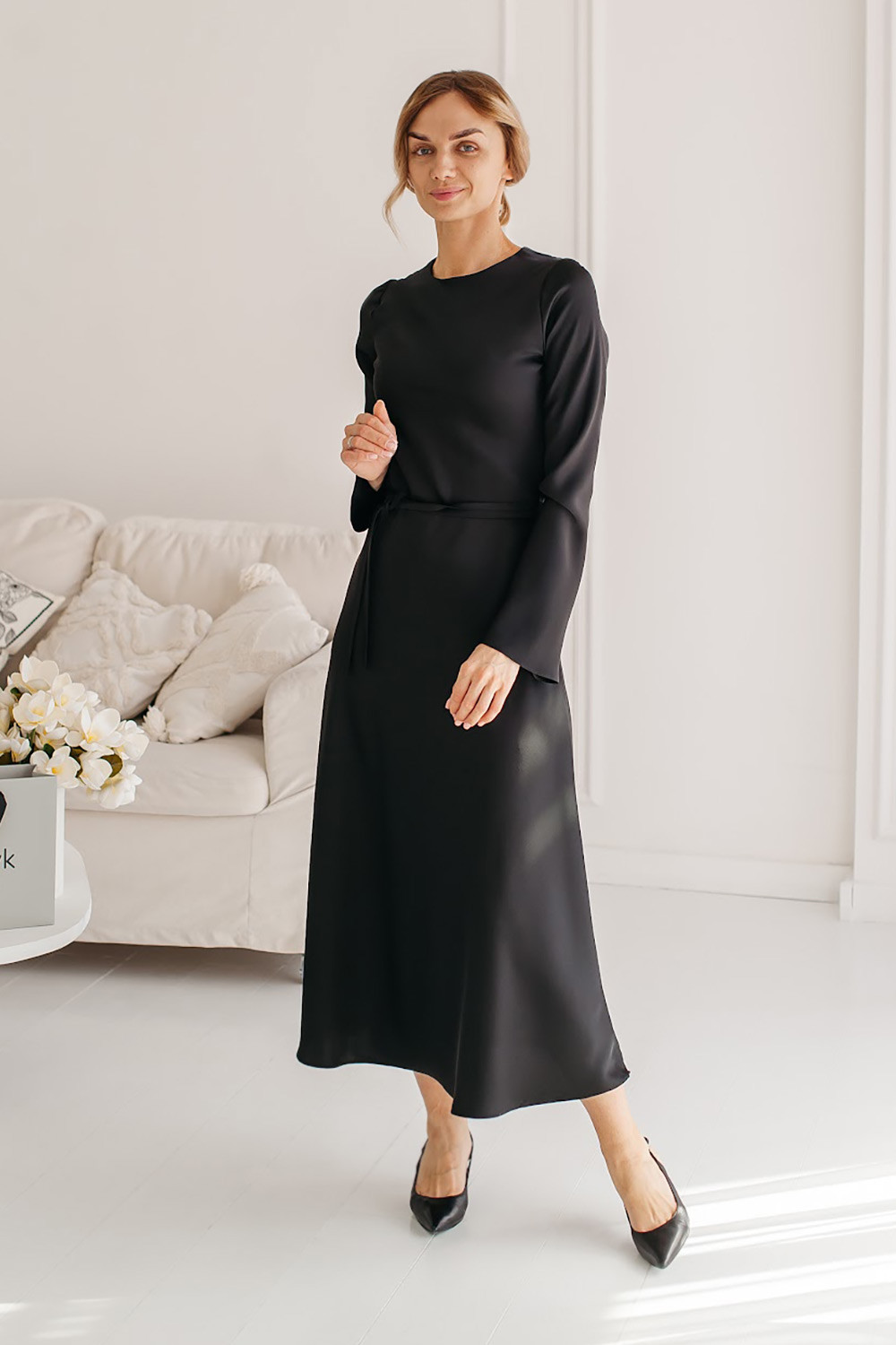 Довгі рукави з легким розширенням додають динаміки, а круглий виріз і акуратна застібка на спинці підкреслюють стриману естетику.