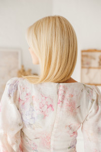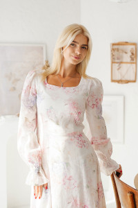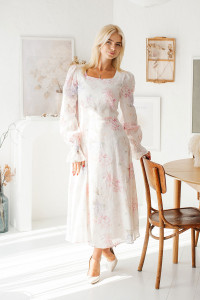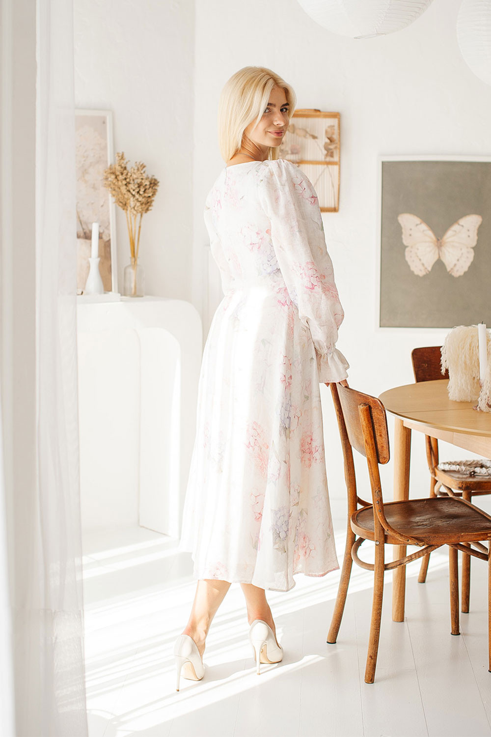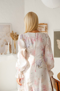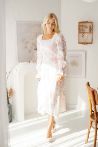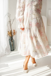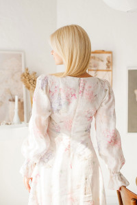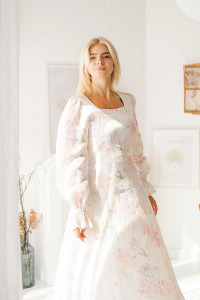 Вільний крій, делікатна підкладка з натуральної тканини та ніжний квітковий малюнок створюють гармонійний образ у стилі розкішного мінімалізму.