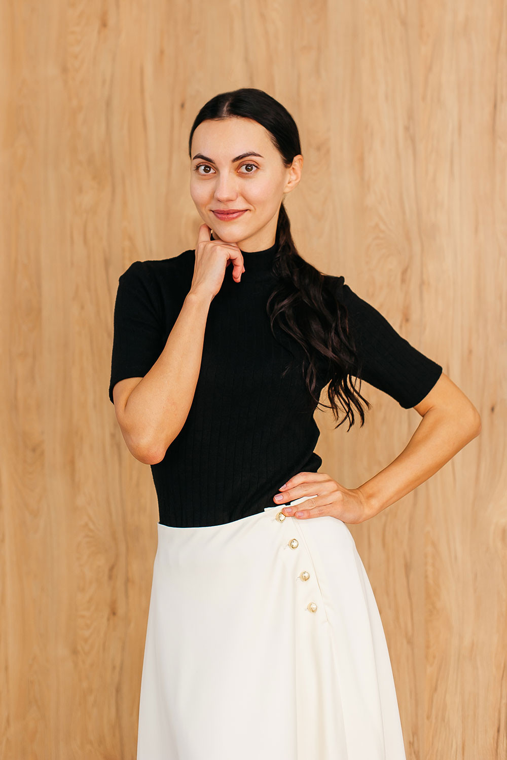Чотири декоративні ґудзики додають делікатного акценту, зберігаючи стриману естетику.