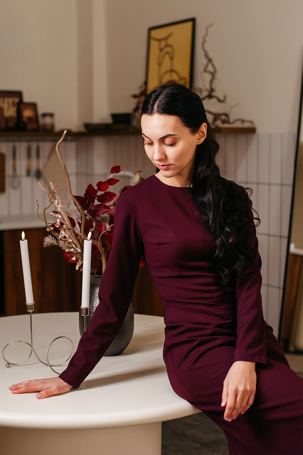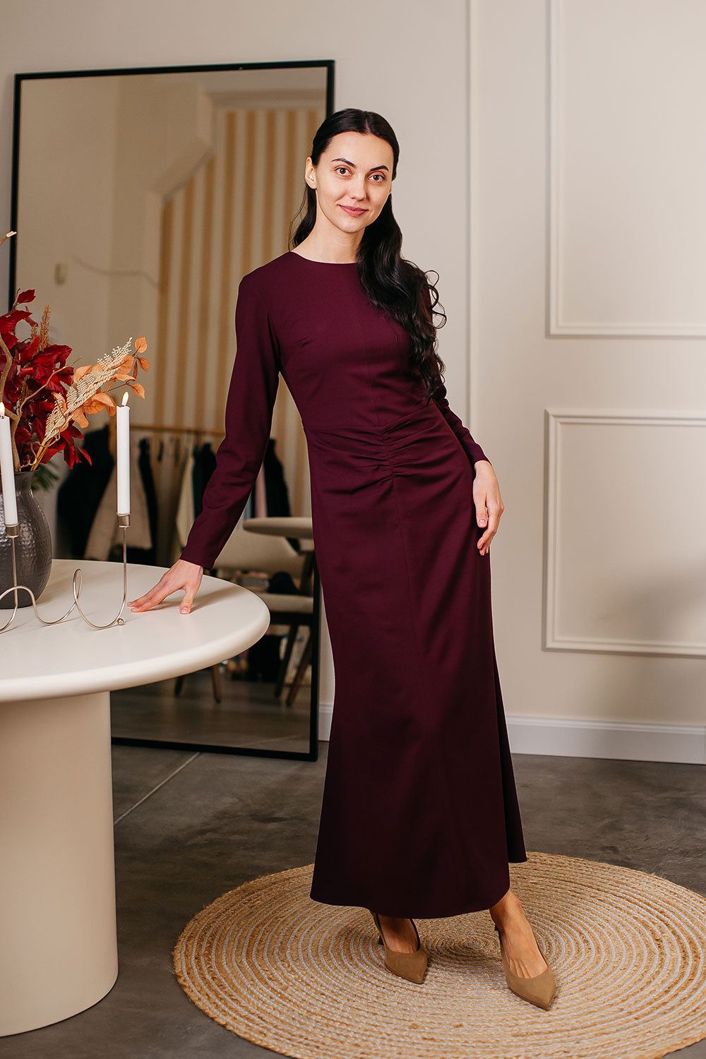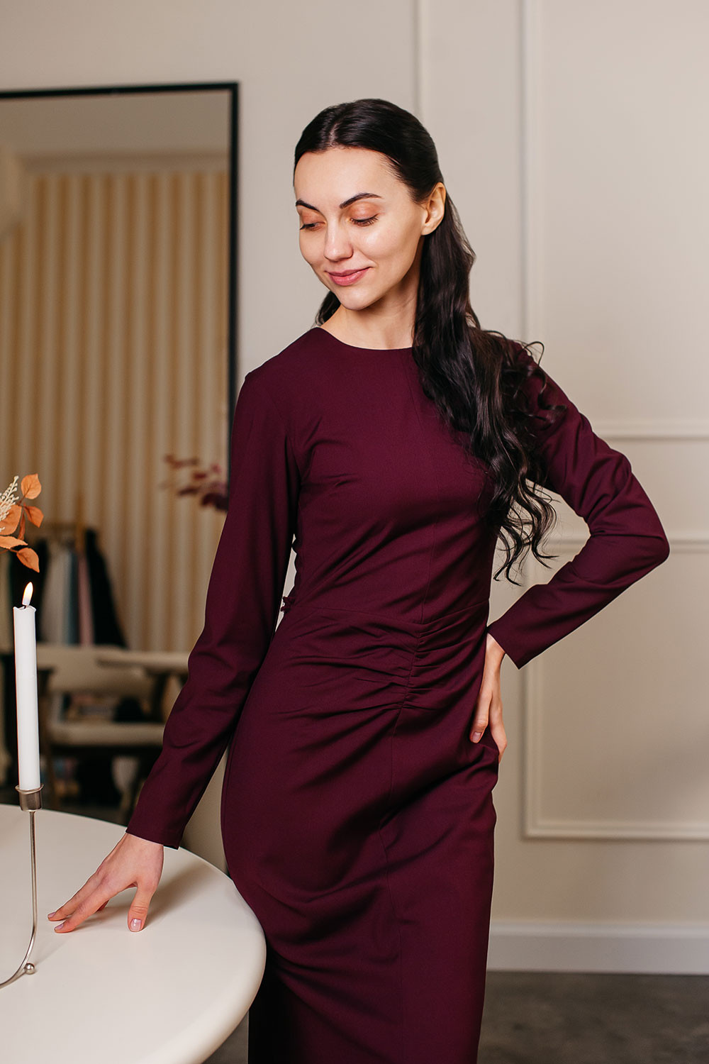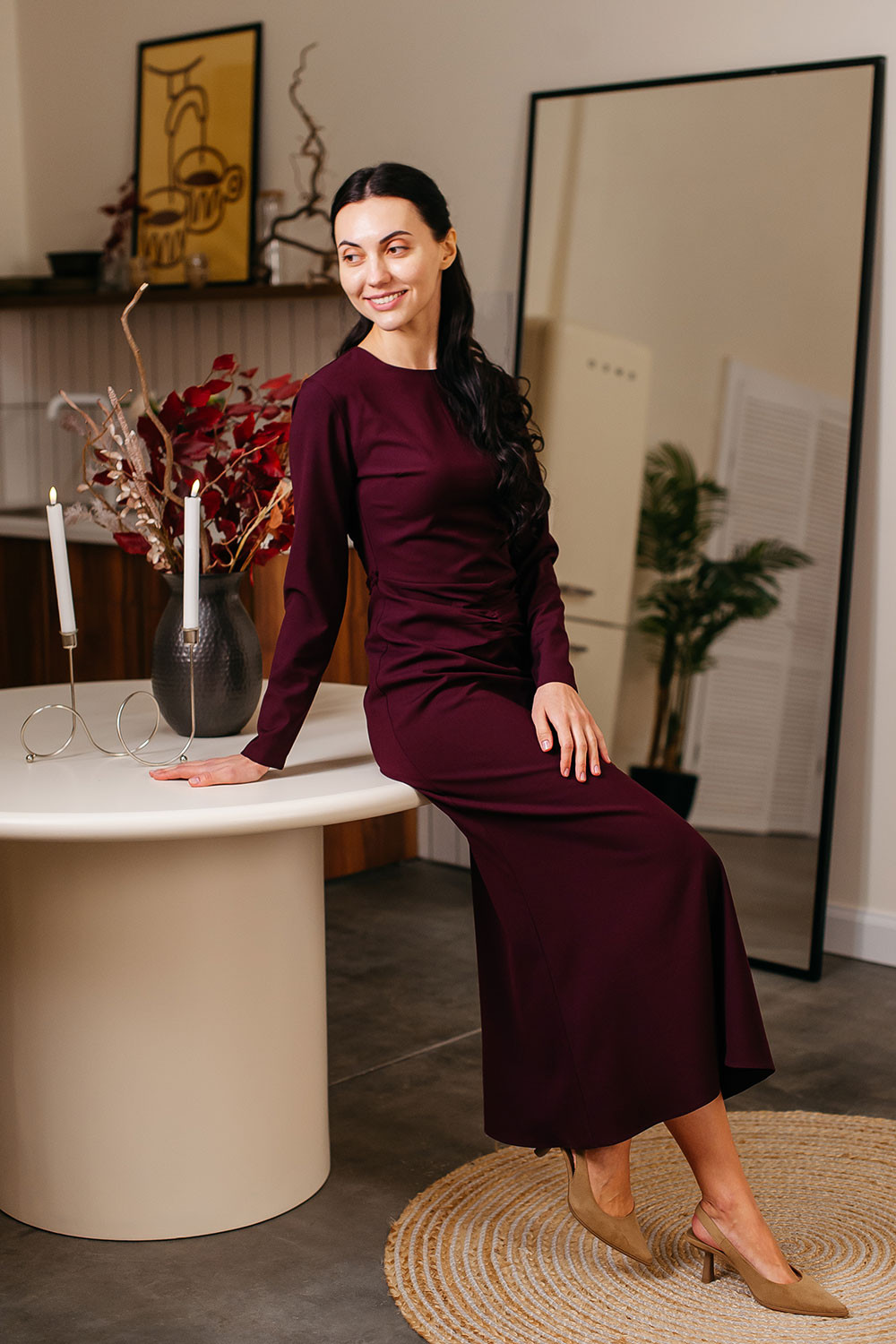 Сукня “Vine Grape” — модель 0096 з акцентним драпіруванням на лінії талії.
