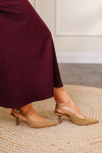 Лаконічний силует із продуманою посадкою: драпірування підкреслює талію та додає образу зібраності. По спинці — застібка-блискавка, яка виглядає акуратно та зручна у щоденному носінні.